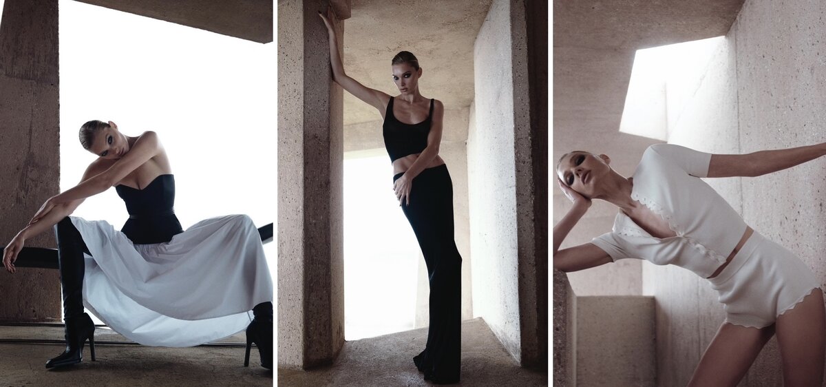 Буквально пару дней назад шведская модель, Эльза Хокс анонсировала дроп новой коллекции своего бренда и вот, вчера новые товары поступили в продажу. Никаких прогревов и навязчивого пиара — с достоинством и гордостью. Таков и характер новой коллекции Эльзы под названием «Minimal 90s». Вещи линейки базовые и лаконичные, однако каждая имеет свою изюминку. Нестандартный крой, оригинальные детали дополняют нюдовую палитру оттенков. В лукбуке мы найдём характерные черты моды 90-х и даже немного набирающего популярность балеткора. Например, экстра-макси платье плотной вязки с вырезом, открывающим линию живота. В молочном цвете подойдёт для повседневной носки тем, кто не стесняется подчеркивать свою фигуру. А его чёрный вариант идеально впишется в вечерний образ. А для девушек, которые предпочитают более сдержанные модели Эльза предлагает закрывающее ключицы и переходящее в митенки серое платье из того же материала. Мини платье с юбкой-пачкой выполнено из хлопка, но, благодаря добавлению нилон