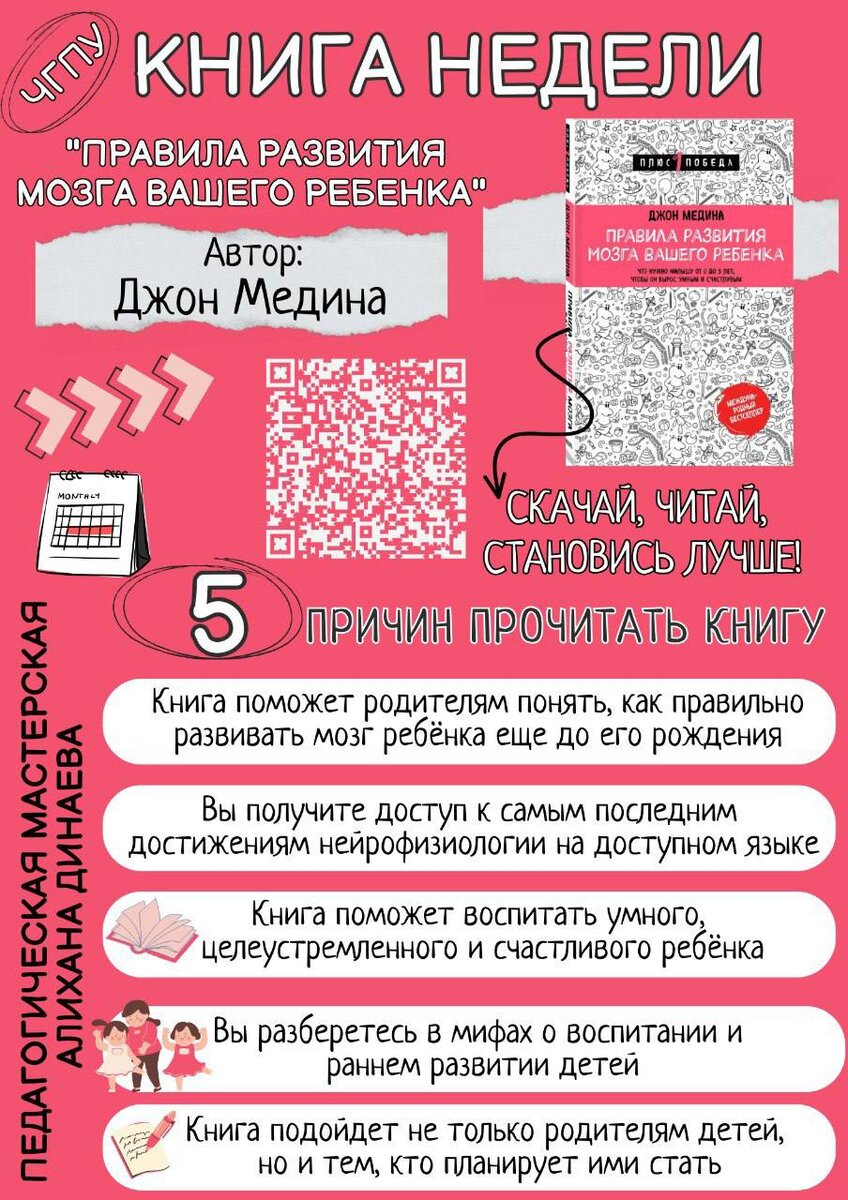 Время еженедельной книжной рекомендации! Воспитание ребенка – это в первую очередь развитие его мозга. Исследователь и автор книги Джон Медина объясняет, что и как следует делать родителям до и после рождения малыша, чтобы вырастить умного, целеустремленного, счастливого, этически состоятельного человека. Рекомендации и советы автора основаны на последних достижениях нейрофизиологии и нейропсихологии. Они звучат понятно и интересно даже для людей, которые вовсе далеки от науки. Из этой книги вы узнаете: В книге автор делится своим опытом и рассказывает о множестве интересных техниках, способствующих развитию ребёнка. Скачивайте, читайте и копите бесценные знания!