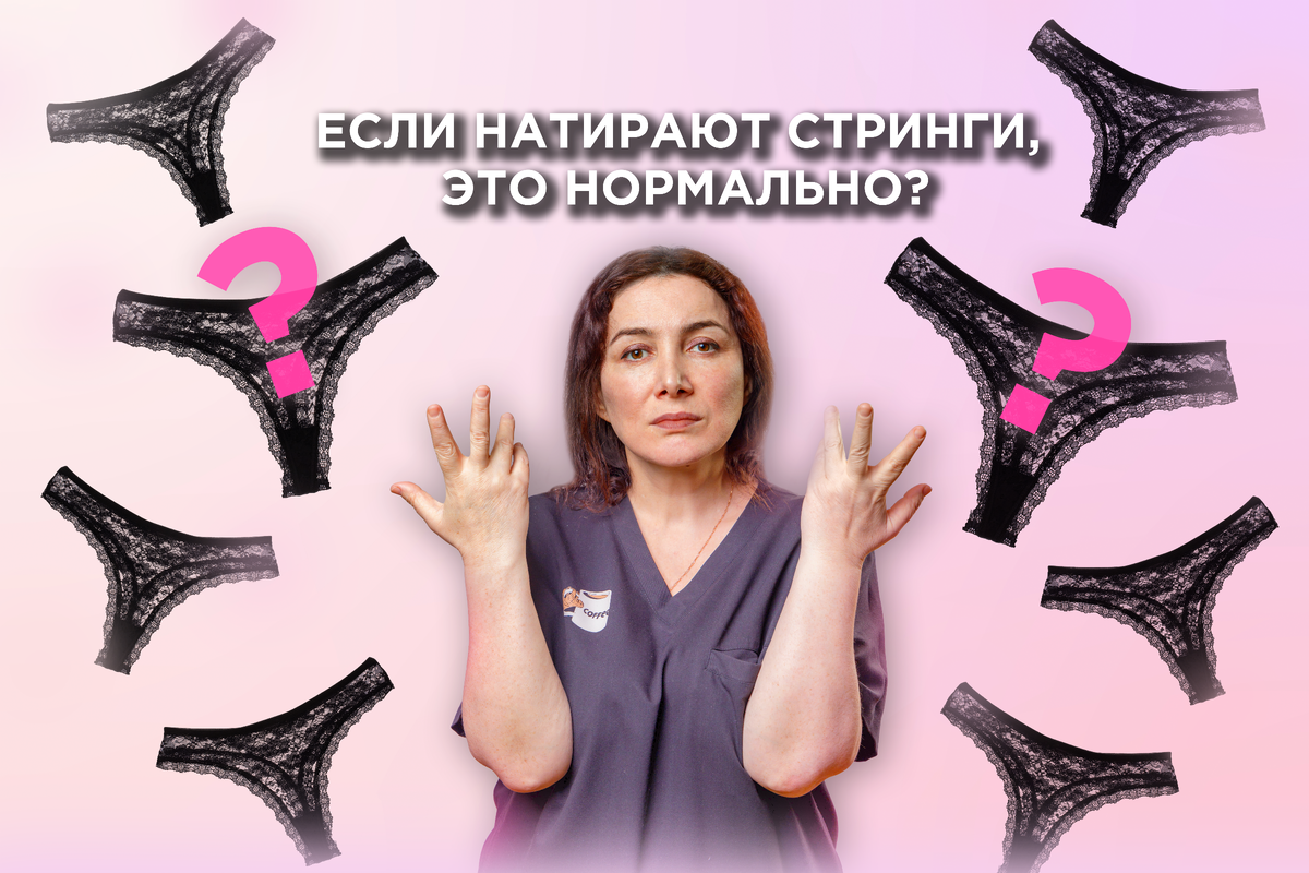 Модные тенденции постоянно меняются, и это касается в том числе и нижнего белья. Стринги — максимально открытые трусики, пикантно оголяющие бёдра, наверняка есть в гардеробе многих молодых женщин и девушек. Их так удобно надевать под платья и юбки из тонкой ткани, облегающую одежду — никаких тебе складок и выступающих швов. только безупречный силуэт. Да и в плане привлечения внимания любимого человека стринги тоже весьма эффективны. Поскольку данная деталь туалета состоит из двух тканевых треугольников с узенькой соединительной полоской, иногда возникают ситуации, когда от ношения стрингов возникают натёртости. Почему это происходит? Основными причинами возникновения дискомфортных ощущений могут быть: В целом, стринги относятся к той категории нижнего белья, ежедневно и постоянно носить которое не рекомендуется. Их надевают в основном «на выход», под облегающую одежду, или по «особому» случаю. Если стринги натирают, не стоит терпеть неудобства ради того, чтобы чувствовать себя неотраз