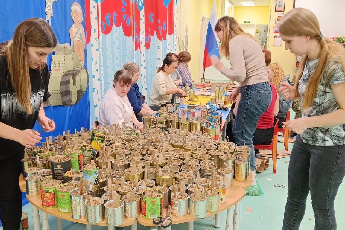 На территории Лужского гарнизона (Ленинградская область) 30 дошкольников из детсада «Лесная сказка» под руководством Нины Пророковой приняли участие в акции «Доброе дело». Они изготовили 500 окопных свечей.