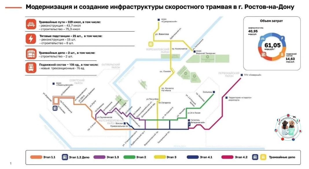 В Ростове-на-Дону хотят пустить трамваи по эстакадам над улицами города. Выделить отдельную полосу для трамвая невозможно, поэтому власти предлагают строить эстакады - в том числе в частном секторе. "Эта идея хороша разве что для освоения бюджетных средств" - считают эксперты. Это создаст лишь загромождение городского пространства и усложнит доступ к трамваю как виду транспорта, объясняют специалисты. В некоторых местах перрон будет располагаться на уровне четвертого этажа. "Складывается ощущение, что проект ростовского трамвая - это что-то сверхсекретное и (сталинское) "Метро-2" где-то нервно курит в сторонке. Недооценка работы с общественным мнением на разных стадиях и в разных сегментах - это особенность ростовской транспортной и, смотря несколько шире, градостроительной политики", — говорит директор "Южного градостроительного центра" Сергей Трухачев. Он же приводит в пример проект таганрогской трамвайной сети, где больше 80% всей протяженности трамвайных путей выполнены обособленны