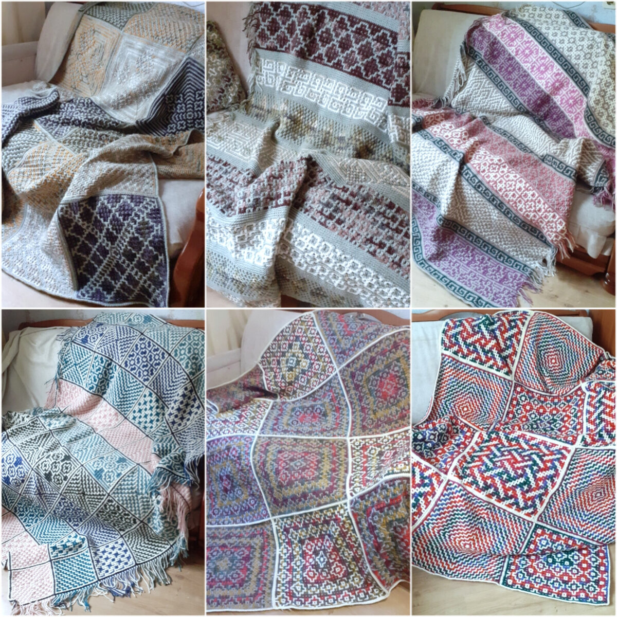 Можно ли считать коллекцией 6 единиц чего-либо? Именно столько "самых нескучных пледов" связано на данный момент. Плед - это вам не салфеточка крючком, это всё равно что собирать ретро-автомобили в переводе на язык вязальщиц. С одной стороны, затратно (и по пряже, и по времени), а с другой, и ощущения совсем другие, удовлетворение от результата зашкаливает. Вязать пледы после салфеточек всё равно что пересесть с Лады на Мерседес. Нужно лишь позволить себе это. А раз данный канал стал своего рода "записной книжкой вязальщицы", то, пожалуй, поставлю здесь цель за этот год пополнить коллекцию до 10. Как думаете, получится? Итак, соберу все связанные мною пледы здесь. Подробнее о каждом (расход пряжи, схемы, способы соединения, процесс, промежуточные результаты, видео, больше фото и т.д.) можно посмотреть по ссылкам в конце статьи. 1. "На одном дыхании" Не заметила, как связала первый плед, настолько было увлекательно и легко. Плед решила вязать горизонтальными полосами, чтобы попробоват