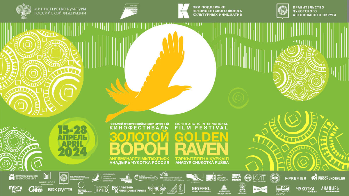 VIII Арктический Международный кинофестиваль «Золотой ворон» объявил конкурсную программу. Смотр пройдет с 15 по 28 апреля в городе Анадырь (Чукотский автономный округ). Об этом сообщает пресс-служба фестиваля. В международном конкурсе полнометражных фильмов будет представлено 11 игровых и неигровых картин. Это российские документальные фильмы «Последний теплоход» Ильи Желтякова о последнем морском пассажирском теплоходе России, путешествующем по северным деревням, «Таня. Лето. Зима» Александра Авилова о жизни хантыйской охотницы, «Невечная мерзлота» фильм Яны Рубановской о научных сотрудниках, работающих в условиях Севера, а также аргентинский док «Тушите свет!» Алехандра Амирона и неигровой фильм «Последняя матрона Яра-Гхара» непальских режиссеров Сартак Карки и Смрити Субеди. Среди игровых участников конкурса лента тибетского режиссера Пема Цедена «Снежный барс», о противостоянии местного охотника и снежного барса, «Там, где танцуют стерхи» Михаила Лукачевского из Якутии, иранский «