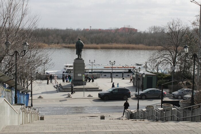 Доброго времени друзья. Вот и ушла мерзкая слякоть из города уступив место приходящему теплу. Мы очень соскучились по прогулкам, а я ещё и по камере. 16 числа было решено выбраться в город. Доехали до набережной, погода шепчет, люди гуляют, всё преображается перед весной. Красят теплоходы, красят перила набережной. Кстати, на моё удивление на Дону уже работает пассажирская навигация и пара теплоходов совершают часовые экскурсии. Мне казалось что навигация открывается в апреле. Прогулялись по набережной до памятника Адмиралу Ушакову. Дойдя до бюста Ушакову, развернулись в обратную сторону и дошли сначала до художника Сергея Шутова, который виртуозно создаёт удивительные картины с помощью аэрозольных баллончиков. Дошли до скульптур которые когда-то стояли около ДК Электрон (многие и не вспомнят) Рядом "Механическое сердце",Дед Щукарь" и "Нахалёнок". Нахалёнка не фотографировал, т.к. его облепила молодёжь. В какой то момент поймал Интересный кадр. Поймав такси в таком ракурсе... Мы отправ