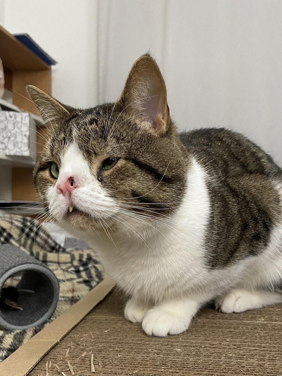 Милка родился самым первым и единственный с необычный внешностью. У него синдром волчьей пасти. Особенность внешности Милки никак не влияет на качество жизни и в операциях по исправлению не нуждается Нос дышит нормально, но когда мурлыкает, начинает много чихать. Так же у него нистагм двух глаз (дрожание глазного яблока), левый глаз видит чуть хуже, и из-за строения часто течет А еще мутация немного затронула и внутренние органы Из-за этого Милке нужно пожизненно сидеть на корме для почечников и регулярно контролировать их состояние Особенности внешности Милки ни сколько не мешают ему радоваться жизни и вести себя как самый обычный кот Милка очень ласковый, добрый, игривый и общительный котик