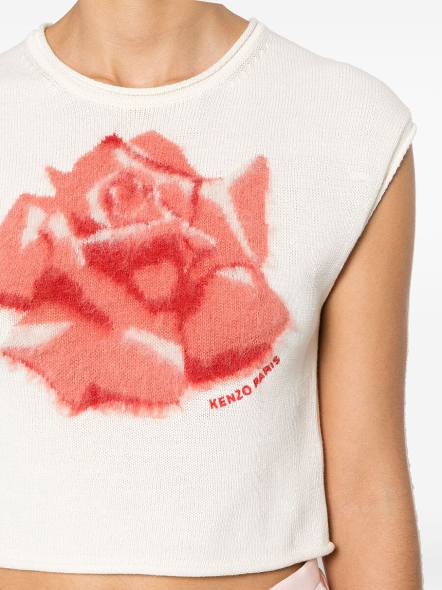 Шикарный топ от KENZO. Я нарисовала схему. Узор можно выполнить методом интарсия или сделать вышивку. Чтобы цветок смотрелся более реалистично, а переходы цветов были плавные, лучше использовать мохеровые нити. Для узора цветка использованы 3 цвета нитей: красный, белый и персиковый. Топ связан лицевой гладью, обратите внимание на низ изделия, нет привычной резинки, а сразу вяжем лицевую гладь и тогда низ изделия будет закручиваться, как на модели. Таким же способом можно обработать вырез для рук и горловину: выбрать петли и связать 8-10 рядов лицевой глади. Если, Вы хотите сделать вышивку логотипа или что-то подобное, то лучше использовать шелковые нити. Если, Вы планируете цветок вышивать, то вышивать его нужно по петлям, как это сделать посмотрите в моем МК: https://rutube.ru/video/4f6ec6f770195bcfc728e58722a34536/ - Вышивка по петлям. Вышивку логотипа делаем прокладывая стежки близко друг к другу. Фото взяты с pinterest.ru Спасибо, что дочитали статью до конца. Всем удачи, ро