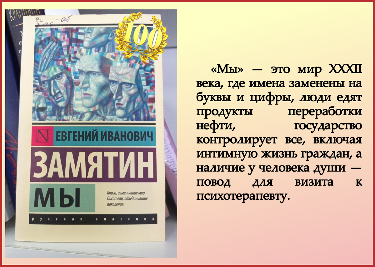 Друзья, вы можете перейти по ссылкам и еще раз прочитать любимые книги. Роман Замятина Е. «МЫ» считается первой антиутопией, и многие её предсказания сбылись раньше намеченного автором срока: в романе можно увидеть практики и принципы тоталитарных государств и страх перед наступлением цивилизации машин.