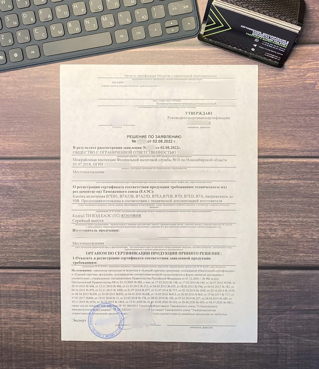Выглядит оно как ответ на заявку, поданную заявителем в ОС о том, что в оформлении сертификата отказано. И содержит в себе следующие сведения: наименование товара, техническая документация (ТУ, ГОСТ или СТО),