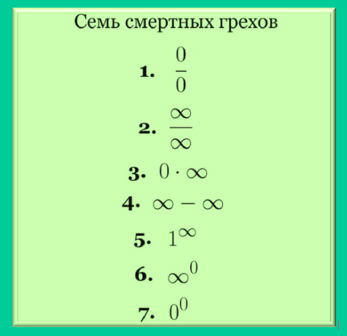 При решении многих задач математического анализа (исследование функции на непрерывность, определение асимптот графика функции, исследование на сходимость несобственных интегралов первого и второго рода, исследование рядов и т.п.) возникает необходимость вычислять пределы. При этом появляются неопределенности различных видов – всего выделяют 7 типов неопределенностей: Разложим числитель и знаменатель на множители удобным способом. Работаем с числителем: Замечание: предельная точка обязательно будет корнем уравнения. В знаменателе в данном примере удобно вынести общий множитель за скобки Теперь подставляем полученные выражения в исходный предел и сокращаем подобные скобки: Получено конечное значение предела – равное нулевому значению – значит в точке х=5 функция обращается в нуль – что видим на чертеже, описывающем данный предел функции. Используем разложения на множители из прошлого примера: и подставляем полученные выражения в исходный предел и сокращаем подобные: Получено бесконечное