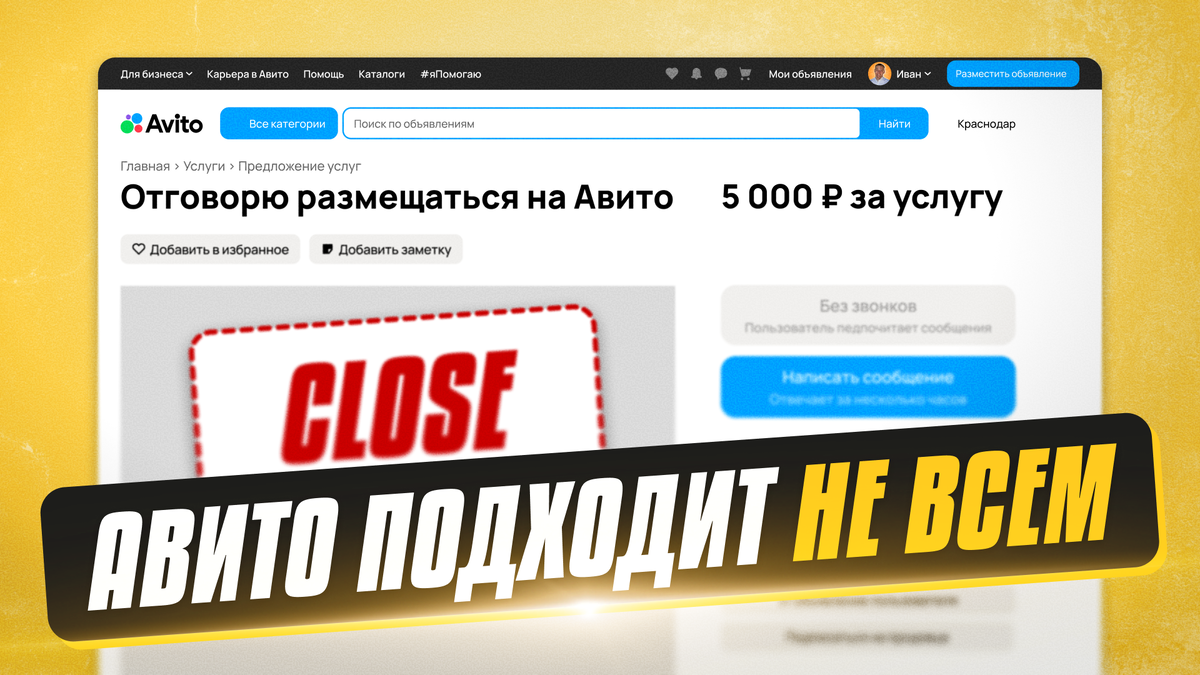 Много мнений об Авито как о “барахолке”, на ней одни “бомжи” и тд. У одних есть клиенты с площадки, а у других нет и как итог приходится уходить с авито с большим минусом.