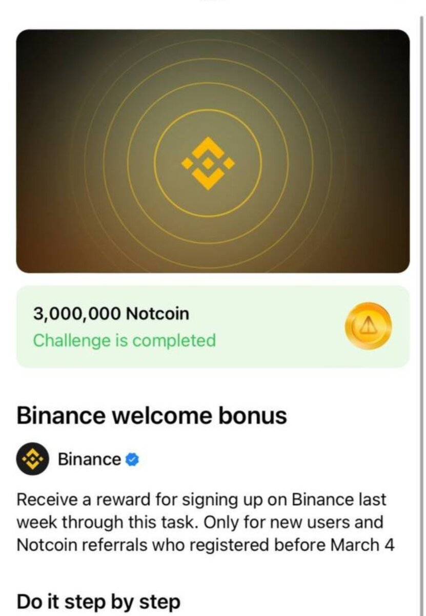 Добрый день Сегодня речь пойдёт про бинанс и как и что будет с ноткоин когда произойдёт листинг на бинанс? Почему бинанс? За регистрацию на бинансе, ноткоин платит целых 3.000.000 монет, что очень не дурно Даже по нынешнему курсу получаете где то 2,5 TON, это 10$ Это уже не первая раздача от бинанса, как я и говорил ранее, сейчас "хомяки" сливают ваучеры на плей маркете. Но во время листинга, эти 10$ легко могут превратиться в 100$ буквально в первый день. Бинанс является самой крупной биржей в мире, занимает лидирующую строчку и очень сильно борется за запуск мем коина NOT 3 и самый весомый фактор, это 5.000.000 пользователей в день, такого результата не показывала не одна криптовалюты. Соответственно запуск будет на бинансе, куда придут новые 5.000.000 пользователей, огромный трафик и огромные деньги на кону. Теперь про цену, ожидаемая цена в 0.000038$ за 1.000.000 монет взлетит вверх, я думаю на старте листинга мы увидим 0,0001-0.00015, а это уже 100$ за миллион монет.