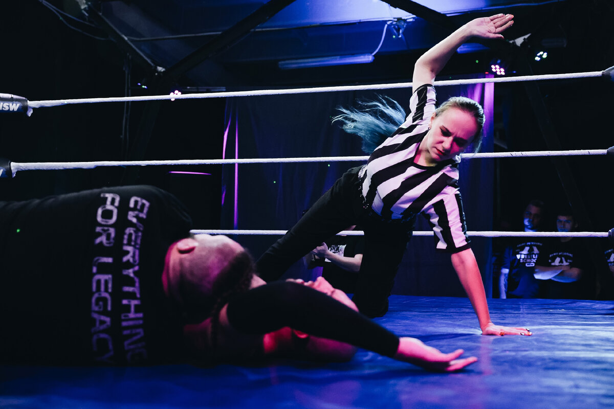 Изначально я шла тренироваться, чтобы стать рестлером. Но по стечению не самых приятных обстоятельств мой дебют всё время откладывался. И где-то через год моего пребывания в NSW ко мне подошёл человек из руководства и предложил попробовать себя в роли рефери. Я согласилась сразу, даже не раздумывая. Я никогда не думала о том, чтобы попробовать себя в этой роли, но когда это было озвучено, сразу возникла мысль «да, это то, с чего можно начать, это отличный вариант для старта». После этого было несколько пробных судейств на тренировках под руководством Сергея Шипилова (главный рефери NSW) — и дебют. Забегая наперёд, могу сказать, что ни разу об этом не пожалела.