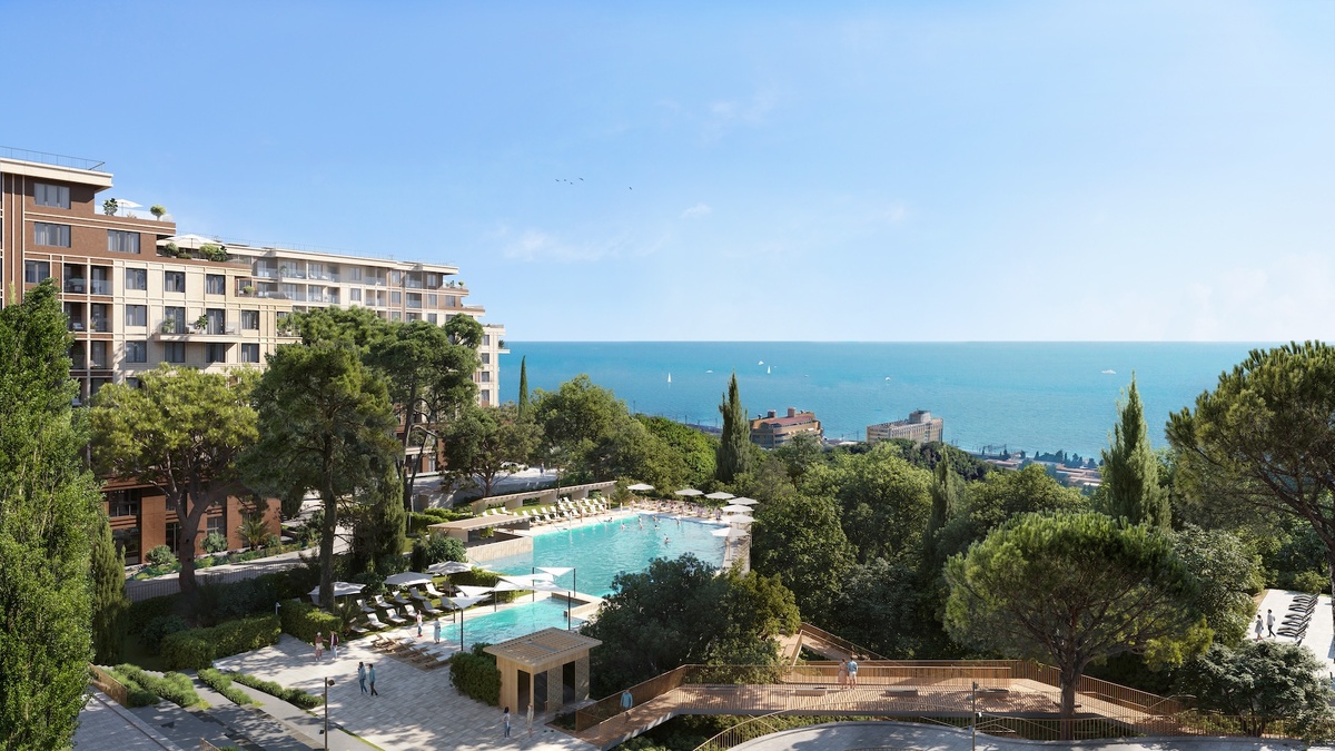 два открытых бассейна (на случай, если море покажется слишком простым), зона отдыха, ресторан с террасой, кафе, спортивные и детские площадки, а также парковка — для самых ценных обитателей курорта, то есть для автомобилей. Фасады отделывают современными экологичными материалами — чтобы было красиво и можно было сказать: «Я не просто живу у моря, я живу осознанно». До аэропорта — 10 минут на машине. Если запустят дорогу «Обход Адлера» и разгрузят улицу Ленина, добираться будете так быстро, что можно будет выезжать за 20 минут до вылета и всё равно успевать забыть паспорт дома. Теперь о самом интере