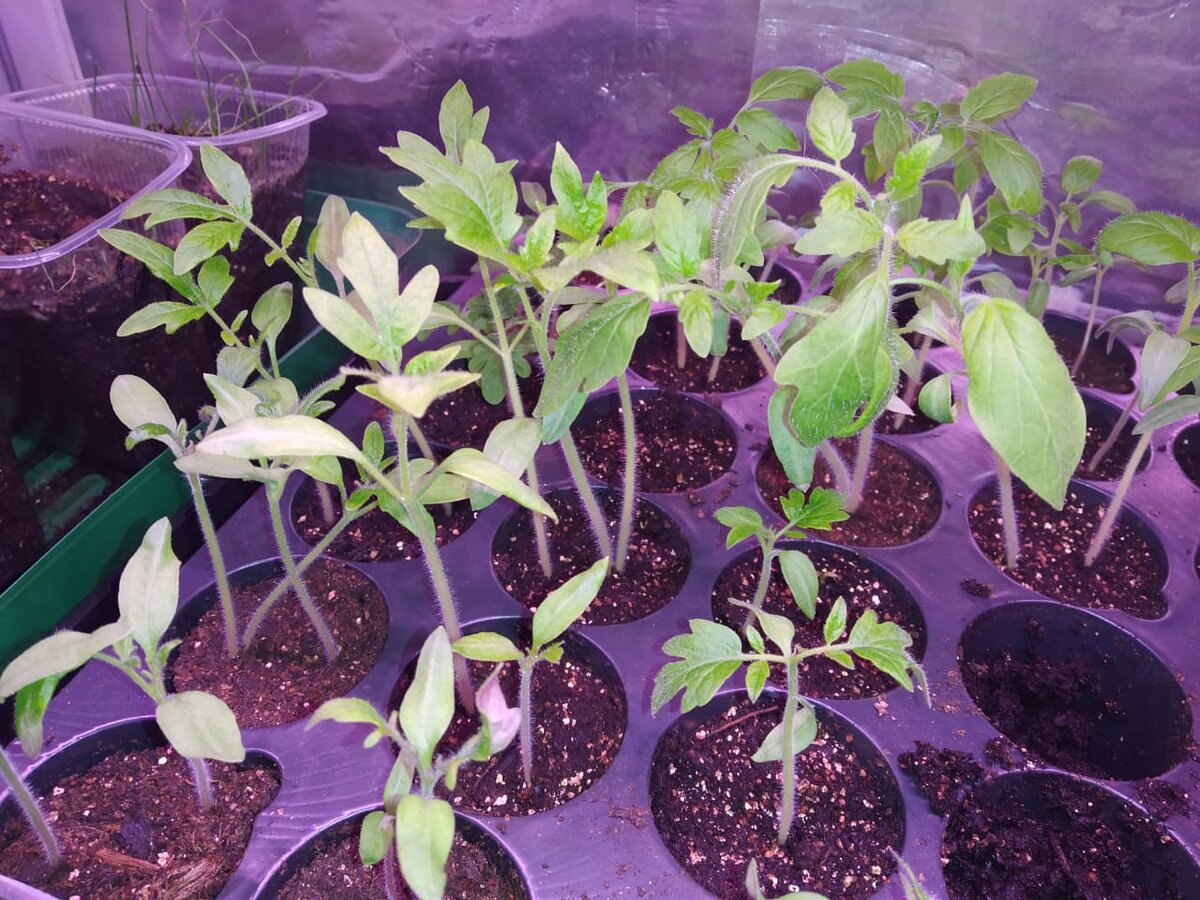 Наконец то рассада томатов пересажена. Заняла в итоге 2 полки стеллажа.