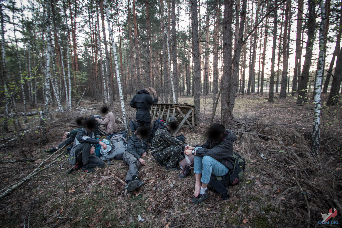 Примерно 15 километров пути через ЛЭП — и вот она, финишная прямая. Перед тем, как пройти к месту отдыха — так назвал его наш проводник — мы сделали общую фотку на память. Уже стемнело, а до Припяти оставалось еще 10 километров.