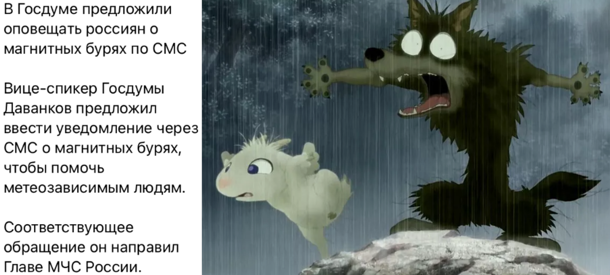 Предлагают даже по СМС оповещать. Я поддерживаю. Нам еще таких оповещений не хватало. Еще пусть шлют о новолуниях и затмениях, они, говорят, тоже влияют на самочувствие.