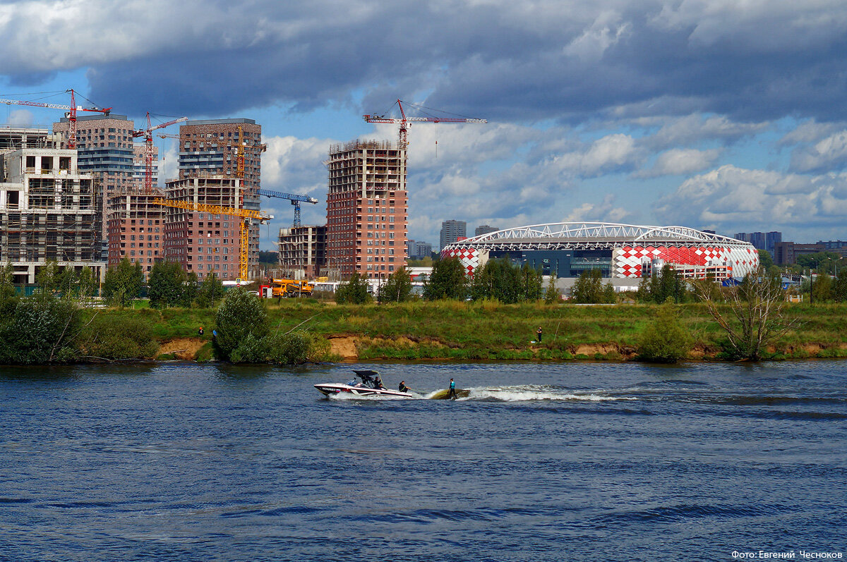 Предыдущий фотоальбом был посвящён ландшафту Тушинского аэродрома, пока до него не добрались строители, а также стадиону футбольного клуба «Спартак» - первому сооружению на земле бывшего аэродрома. За сезон команда Премьер-лиги проводит всего 15 домашних матчей в Чемпионате России плюс несколько игр на Кубок - спорт не приносит дохода, это убыточное предприятие на спонсорской поддержке и, чтобы компенсировать строительные расходы на стадион, инвесторы параллельно занялись жилищным строительством.