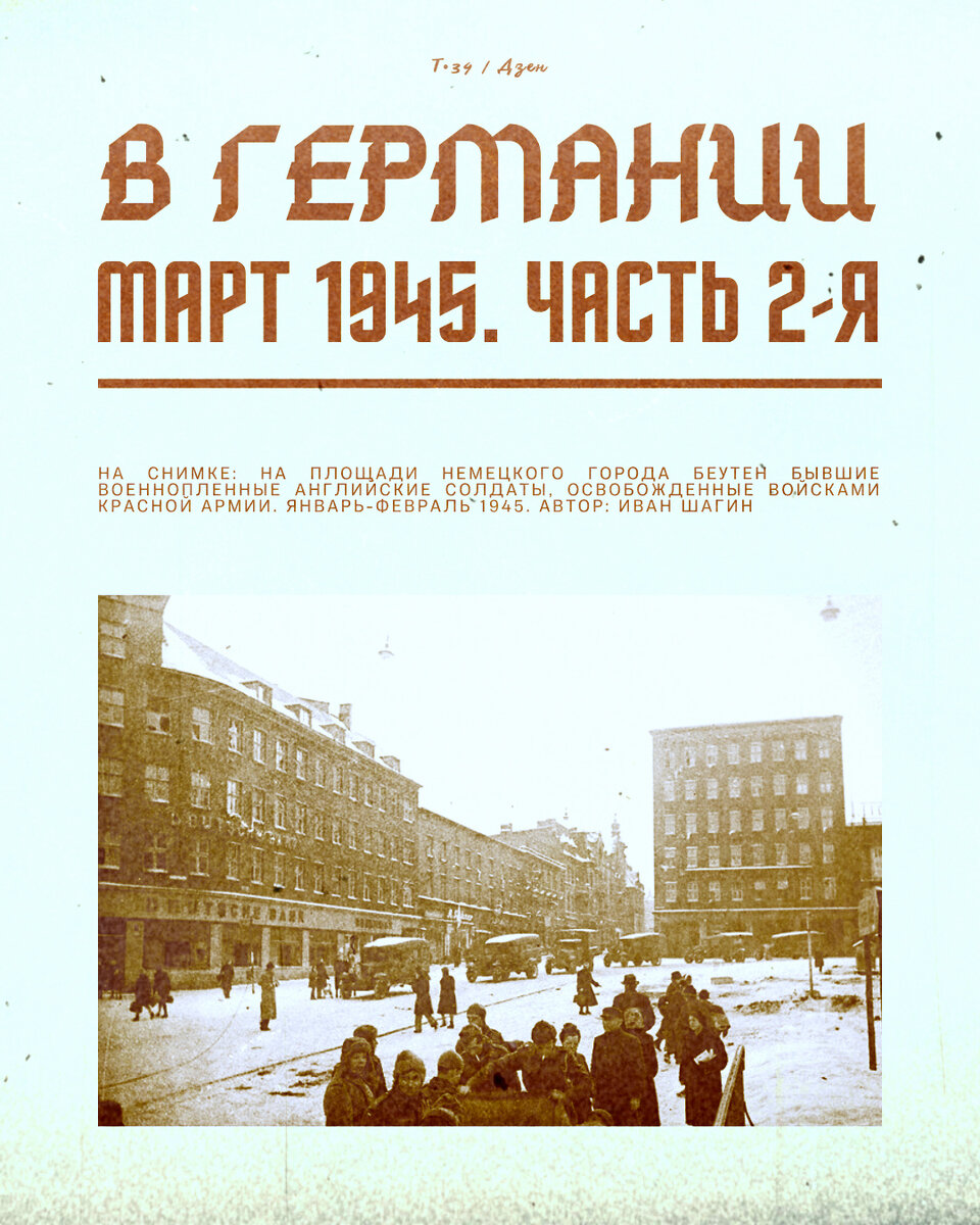 На улицах немецких городов не слышно громкой речи. Теперь немцы разговаривают вполголоса, шёпотом. Покажется вдали советский солдат или офицер — замолчат, прижмутся к стенке, предупредительно поднимут шляпу, дождутся, пока смолкнет шум шагов, и только тогда возобновят прерванный разговор. Но иногда сумрачные улицы Глейвица, Беутена, Гинденбурга вдруг оглашаются громкими, непринуждёнными голосами. Звенит смех, раздаётся весёлая песня. Из-за угла показывается француз в большом зелёном берете с пушистым помпоном, два — три английских солдата в лихо сдвинутых на левое ухо бескозырках, а чаще всего группа украинских девчат из-под Харькова, Полтавы, Лозовой.