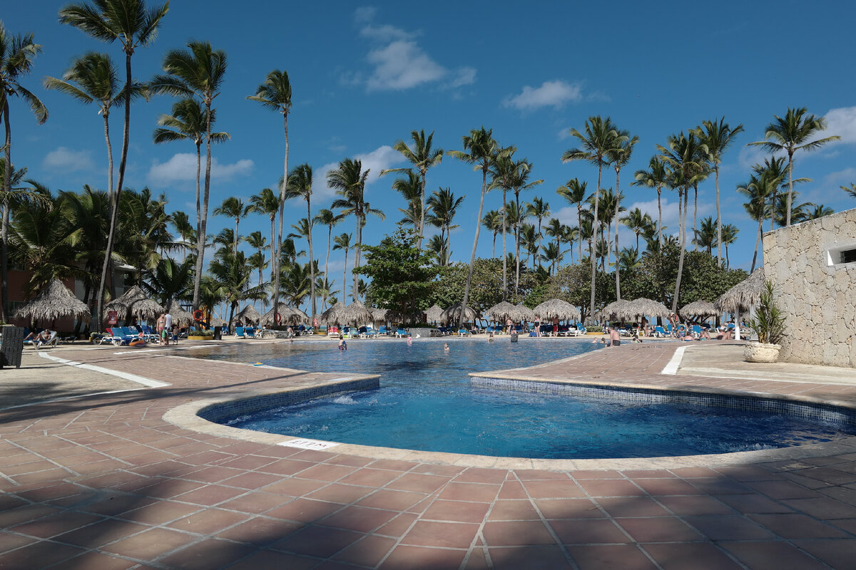 Тут же разница по сравнению с СПб и Москвой - 7 часов. Приземлились в аэропорту Пунта Каны в полдень, а дома в это время было уже семь часов вечера. Если честно - то ни я, ни жена, ни дочка никого "джетлага" не испытали, легли вечером дня прилета спать в нормальное (по местному) время, может, чуть раньше обычного, и на следующее утро поднялись в весьма бодром состоянии. Видимо, пытка под названием "чартер от Азура" капитально переформатирует организм, заставляя его жить с нуля с первыми шагами по трапу на выходе из самолета ;-)