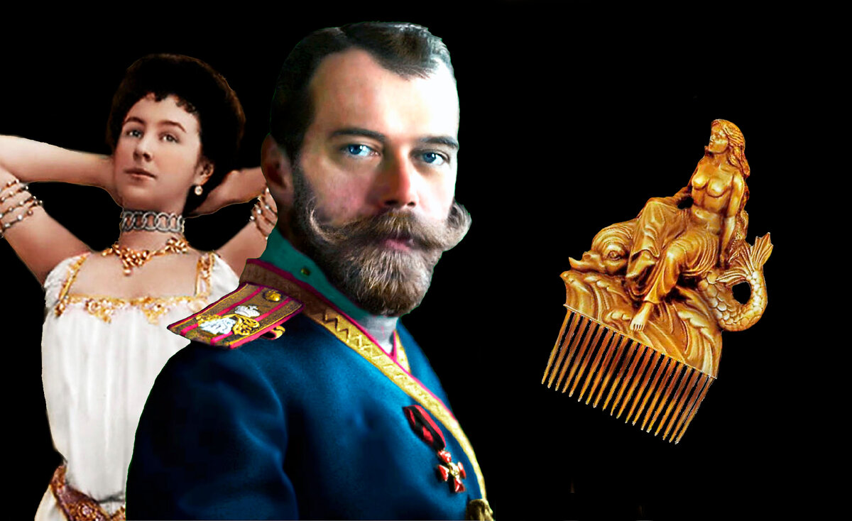 — Но больше всего в своей коллекции Кшесинская ценила древний золотой гребень! — продолжила свой рассказ Надежда Арсеновна. — Он был удивительно красив: девушка смотрит вдаль на море, а в море плещутся два дельфина. Если верить легенде, он принадлежал неизвестной цивилизации и был сделан из золота 1000-й пробы. Такого золота в природе не существует. Балерина купила гребень за баснословную сумму у поэта и путешественника Николая Гумилева. Он нашел это чудо во время раскопок на острове Русский Кузов. Гумилев вскрыл древнюю гробницу, в которой лежал скелет женщины 2,5-метрового роста с единственным украшением — гребнем.