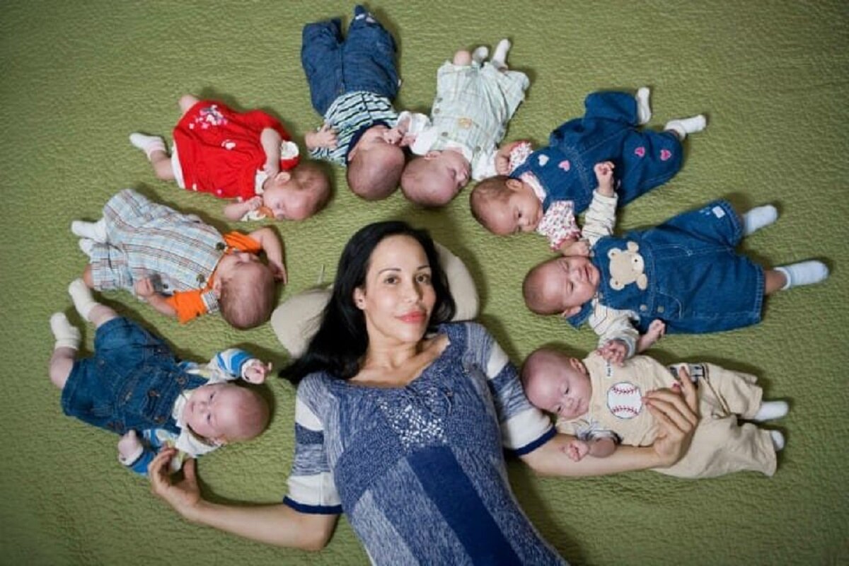 Когда Надя произвела на свет шестерых ребятишек, она задумалась о последней беременности. Тогда она вновь прибегла к помощи того самого доктора Майкла Камвер. Всего получилось создать 12 эмбрионов. Почему-то доктор решил совершить подсадку всех эмбриончиков и каково было его удивление, когда восемь из них прижились. Кстати, так как врач нарушил этику и поверг жизнь Нади риску, у него отобрали лицензию.