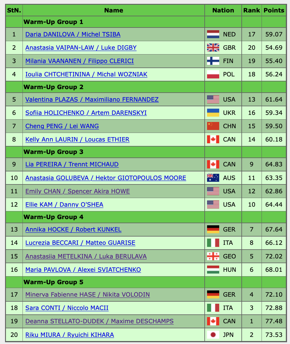 Сумма: 204.60 - первые пробили 200 баллов на этом турнире! И даже компоненты в ПП 62.19 не самые низкие для их уровня - на ЧЕ при одной ошибке, q на каскаде, им ставили 58.84 - может, сказалось сейчас четвёртое место на ЧЕ или на ЧМ на фоне других грязных прокатов ребята смотрелись значительно лучше.