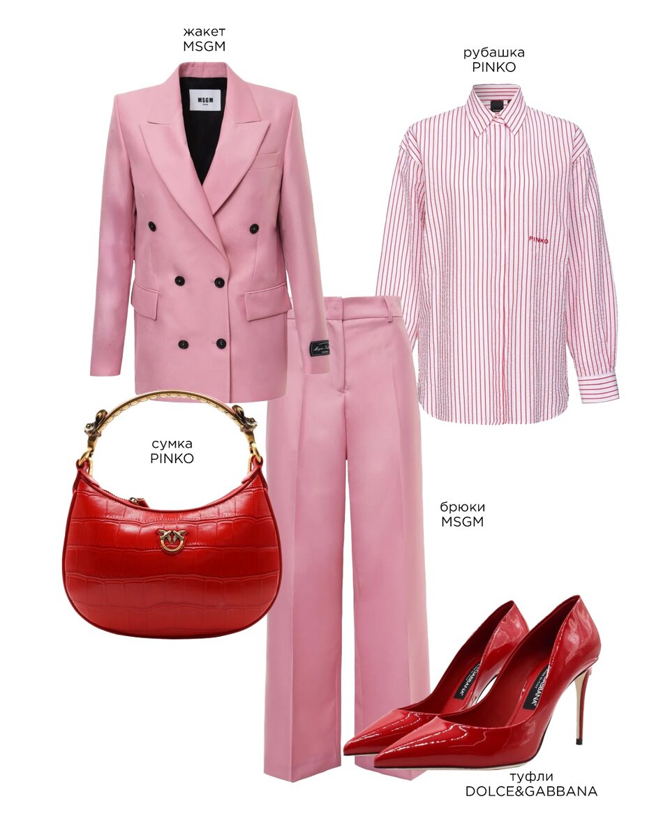 Следующий тренд — сочетание красных туфель с одеждой в розовых оттенках. Это сочетание создает непринужденный и романтичный образ, который идеально подходит для весенних прогулок и романтических свиданий.
