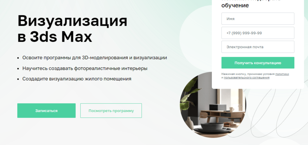 2. Основы визуализации интерьеров в 3ds Max от Skillbox (сайт школы)