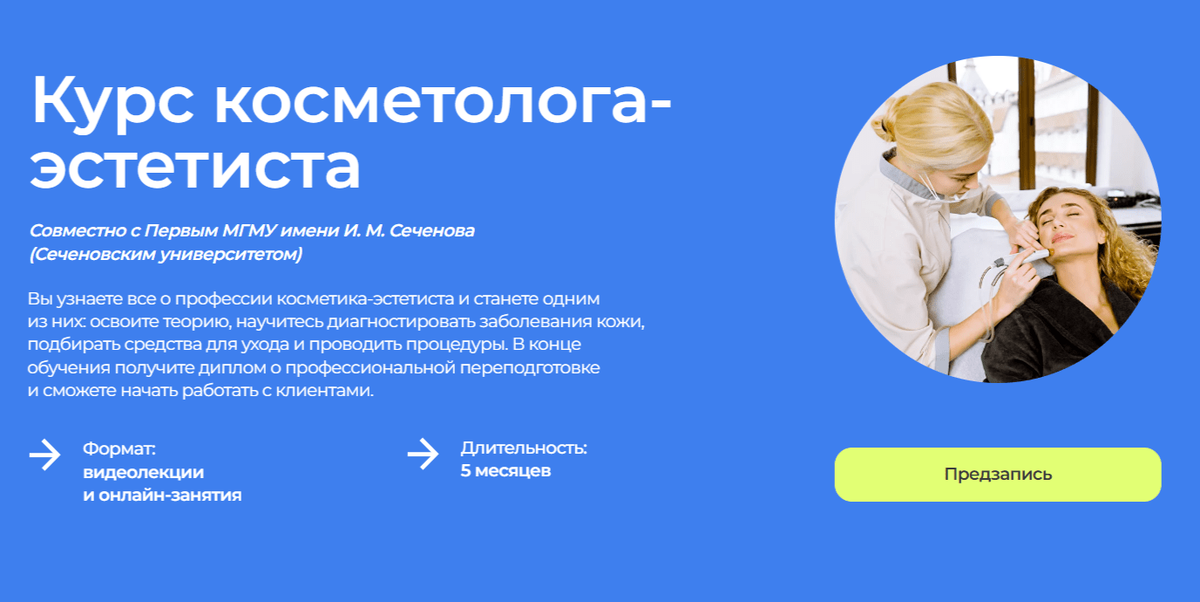 1. Курс косметолога-эстетиста от Среда обучения (сайт школы)