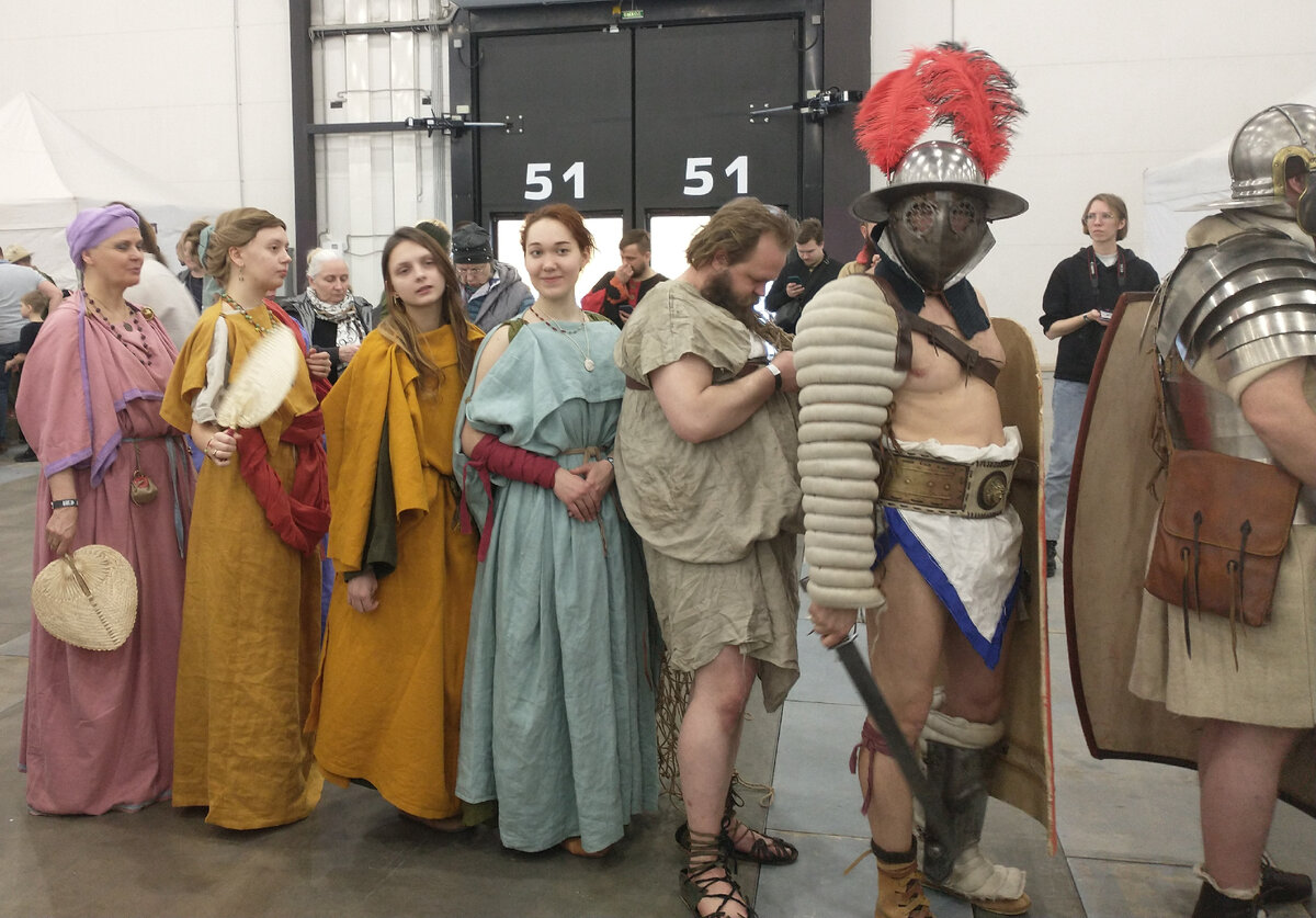 Вам когда-нибудь хотелось оказаться в другой эпохе? Увидеть как жили в Древнем Египте, встретить античных воинов или мушкетеров? Мне вот повезло. Хоть я и не проваливалась во временную воронку, а просто посетила фестиваль, представляющий клубы исторической реконструкции. Но там были и рыцари в блестящих доспехах, и дамы в костюмах разных эпох, индейцы, японские самураи, солдаты начала 20-го века. Все клубы организовали интерактивные станции-выставки, на которых можно было увидеть предметы быта, украшения, оружие. И все можно было подержать в руках, примерить, попросить рассказать о каком-то предмете. Почти все эпохи и культуры обучали историческим настольным играм. Угадайте, что больше всего заинтересовало моего брата? Пока мы отвлеклись на месье в красном камзоле, мелкий утащил топор у австро-венгров и, счастливый такой, идет нам показывать. Трофей вернули. На площадке около входа показывали танцевальные номера и выступления музыкальных фольклорных коллективов. В течение всего дня п