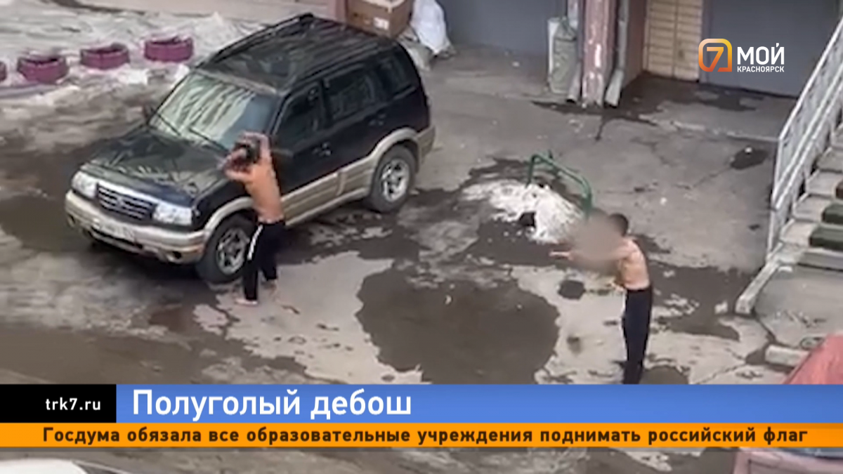Вот таким полуголым шоу нарушили покой благополучного Северного. Двое полураздетых парней развлекались во дворе дома на 9 мая прямо средь бела дня. Но объяснениями, кто за кого готов умереть и объятиями дело не ограничилось. Юноши стали бегать по двору, громко кричать, пинать мусорки и бить припаркованные автомобили.