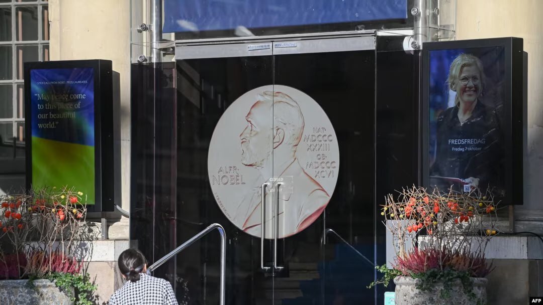 Там также имена лауреатов по литературе Светланы Алексиевич, Дж. М. Коетзи и Герты Мюллер и еще 19 лауреатов по физике, химии, медицине и экономике.