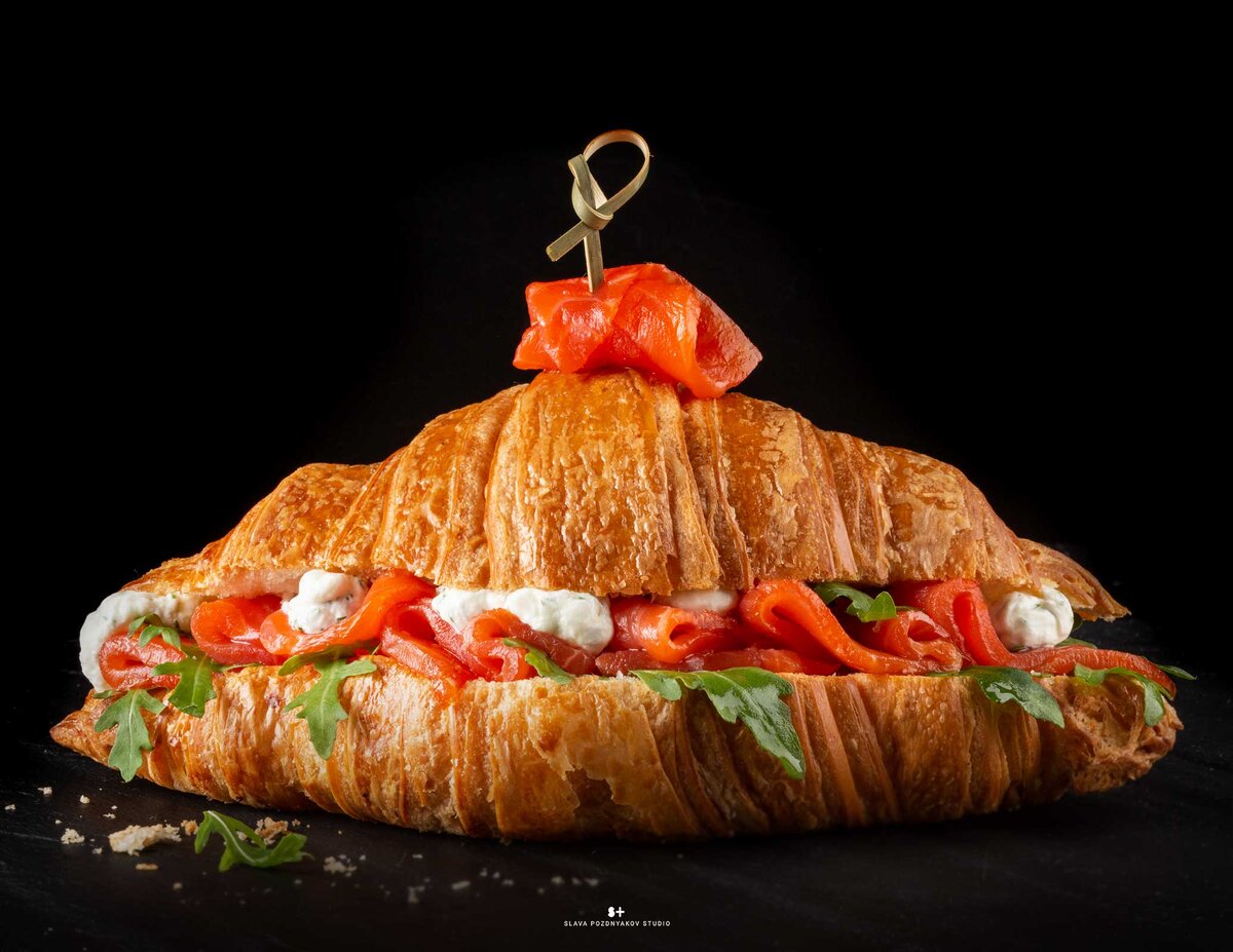 Фотосъемка круассана с лососем. Фуд-стилист и фотограф Слава Поздняков.