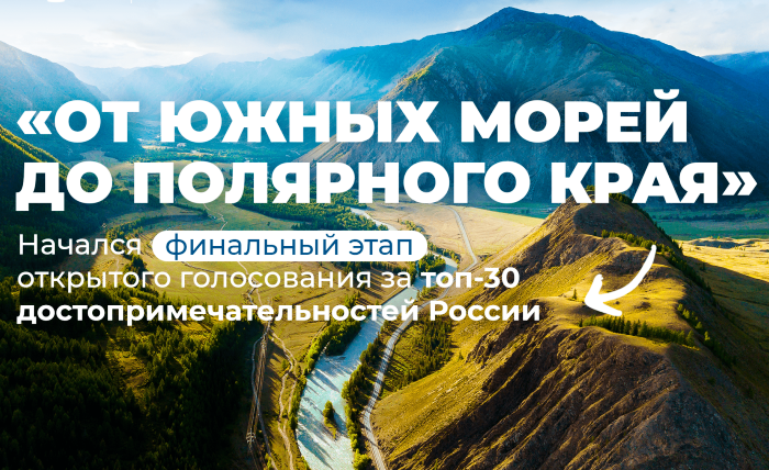Надо только успеть проголосовать до 1 апреля. С начала весны в стране стартовал Всероссийский конкурс «От южных морей до полярного края», организатором которого выступила программа Росмолодежи «Больше, чем путешествие». Его цель – популяризировать достопримечательности регионов и способствовать отечественному туризму в раскрытии новых внутренних маршрутов. На первом, полуфинальном, этапе, который длился до 15 марта, в каждом из 89 регионов выбиралась путем интернет-голосования одна из пяти локаций, которые представила региональная команда платформы местагордости.рф. Набравшая наиболее число голосов достопримечательность включена в финальный этап конкурса. В финале, который проходит с 19 по 31 марта, россияне выберут локации, достойные звания лучших в трех номинациях: «Гордость моей страны» (здесь должны быть представлены объекты исторического наследия), «Душа моей компании» (точки притяжения молодежи) и «Мечта моего сердца» (места, которые голосующие считают для себя наиболее важными