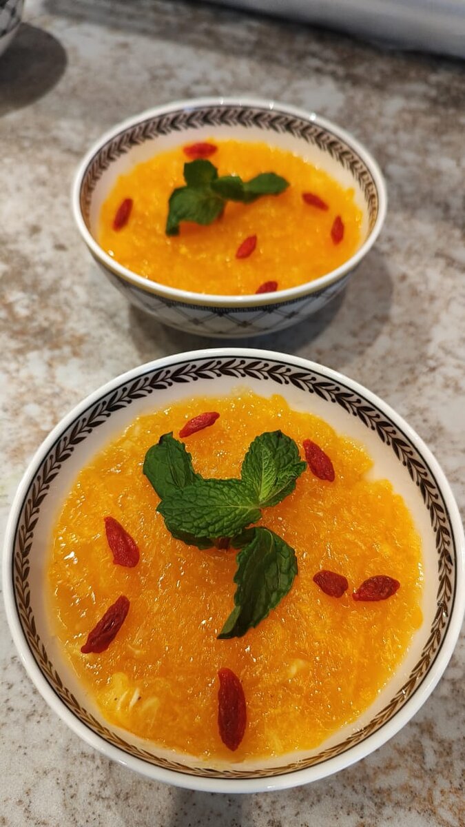 Давайте приготовим яркий и вкусный мандариновый десерт с ягодами годжи, где минимум калорий и максимум настроения