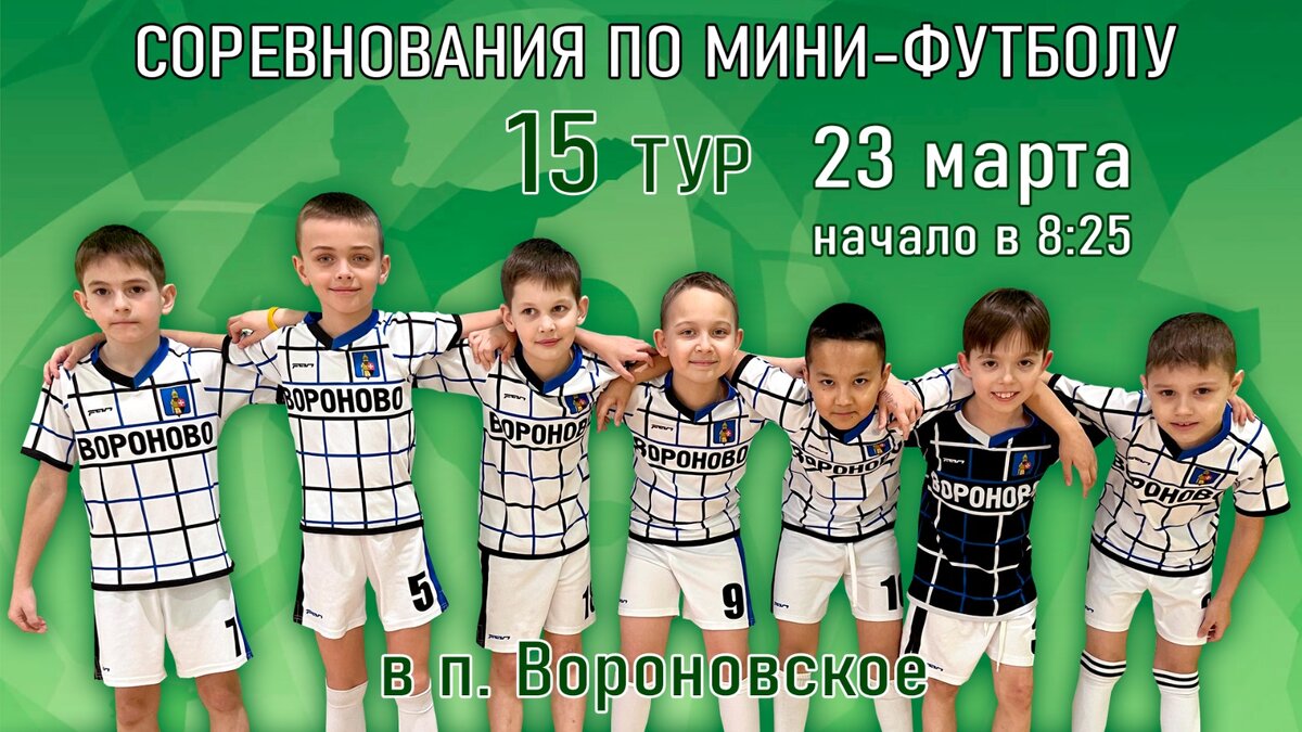 23 марта 2024 года (Суббота) пройдёт 15 тур соревнований по мини-футболу среди детей 2012-2013, 2014-2015 г.р., на призы МБУ "СК "Вороново" В возрастной категории 2014-2015 г.р., состоятся заключительные матчи.