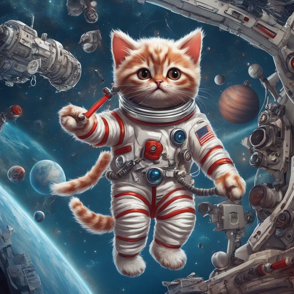 Привет всем! Продолжаем подборку картинок, в этот раз с Котами космонавтами, часть ВОСЕМЬ. 🤫 Космос всегда был местом загадочным и притягательным для человечества. И неудивительно, что даже наши милые пушистые друзья - котики, мечтают отправиться в космос и исследовать его просторы. Представьте себе картину: котик в космическом костюме, с шлемом на голове, парит в невесомости, окруженный звездами и планетами. Это так мило и захватывающе!