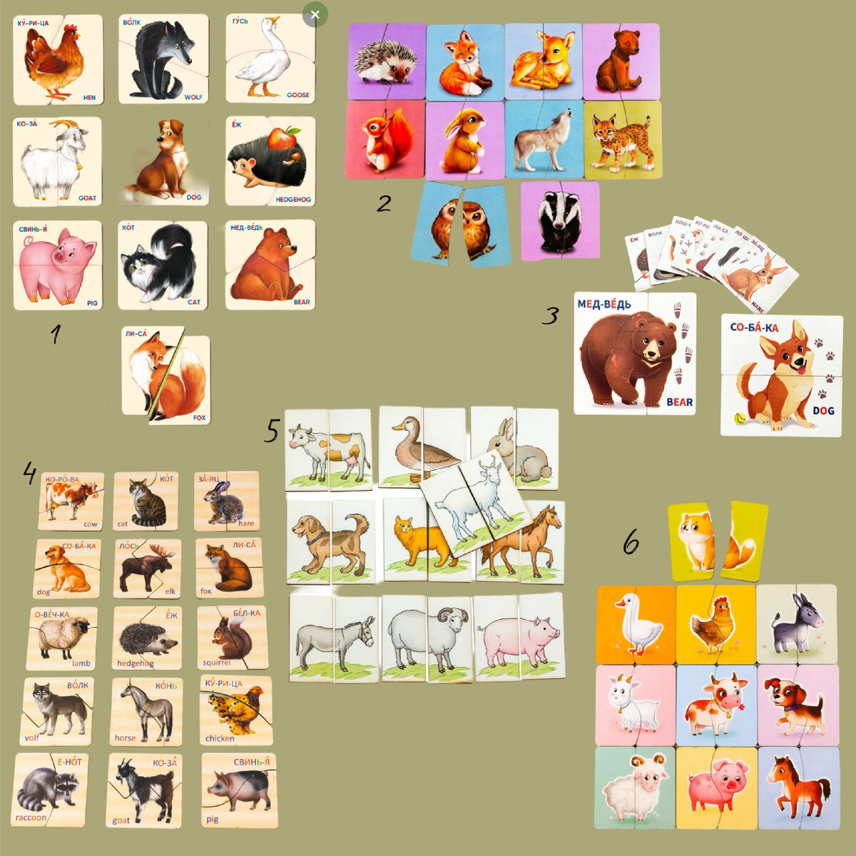 Где-то с 8-10 месяцев у нас появились пазлы картинки половинки Животные. Сначала мы рассматривали пазлы, как картинки, не разделяя на половинки: Потом разделили пазлы на половинки и учились соединять их, при этом не забывая: Со временем начинали усложнять задания: Такие пазлы развивают мелкую моторику, пространственное мышление, внимание, логику, учат понятию часть и целое. Собрала для вас подборку деревянных пазлов половинок с Животными: Тг. канал