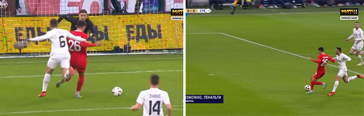 После равного начала товарищеского матча России с Сербией суть матча резко изменилась на 19-й минуте – из-за пенальти и удаления у сербов. Момент пришел из отличных действий полузащиты. Александр Головин удивил всю сербскую защитупасом в касание за спины, а Даниил Хлусевич убежал к воротам. Реализовать не получилось – Милан Гайич прихватил так, что выбил игрока «Спартака» из равновесия.