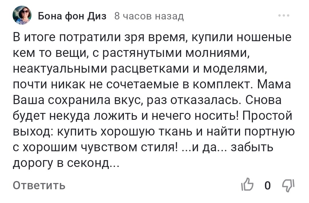 Приветствую вас на моём канале о моей жизни в Севастополе☀⛵⚓⛵☀ 2 последние статьи-обзоры про покупки в секонде показали, насколько ужасны могут быть люди. Весеннее обострение у "божевильных" в этом году особо буйное😁😁😁. Я этих упырей сразу отправляю в бан, о чем честно предупреждаю в каждой такой статье. Но упыри не понимают.... Мало того, они специально на меня подписываются, чтобы накидать своих к_а_к_ашек в комментариях. .. Вот часть этих комментов. Пусть Дзен знает своих героев. 😳😳😳😳😳 Вот оно (потому что Марина может быть в интернете и не Мариной) пишет, что вы мне пошло льстите. Кстати, пошло льстить- это как??? Тётя без фото...Вернее, тётя ассоциирует себя с ягодками на тортике))))...Никто и звать никак... Я за запрет анонимности в интернете!!! Потому что считаю, что человек должен нести ответственность за свои слова не только перед Богом, но и перед Законом. Оскорбил- будь добр получи судимость. Я уже давно в реальной жизни убрала из своего окружения токс