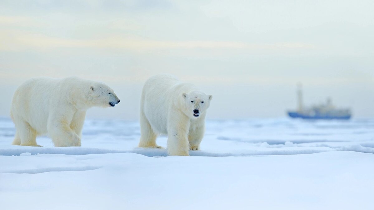 Белые медведи устроили в Обской губе забег. Видео