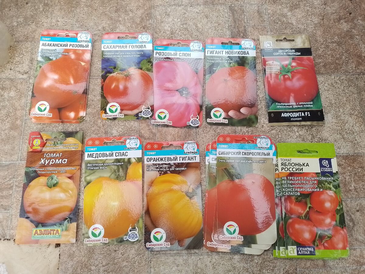 Добрый день. Приветствую Вас на канале О ЦВЕТАХ И НЕ ТОЛЬКО. Спасибо, что заглянули) Я продолжаю вести дневник и рассказываю о весенних работах в теплицах. Чем интересным сегодня занимались? Посеяли томаты На фото ниже все сорта, какие в этом сезоне мы выбрали. Они для нас не новые, а уже проверены годами. Дают хороший урожай. Новый взяли на пробу только Афродита F1 и Оранжевый Гигант. Сажали Вы такие томаты? Поделитесь впечатлениями, кто пробовал. Немного расскажу про остальные. Мы Помидоры не снимаем с кустов зелёными, многие в нашем регионе такое практикуют, не могут дождаться пока поспеют. Лето короткое. Поэтому сажаем раннеспелые сорта на первое время, а в основном высокие, на которых поспевают розовые мясистые помидоры. Высаживаем больше двухсот корней. Для чего так много? В первую очередь для своих нужд. Делаем домашний томатный сок, очень он нам нравится. Вот розовые томаты как раз хорошо для этого подходят. Много кушаем свежими. Пока идёт сезон, почти каждый день салат и