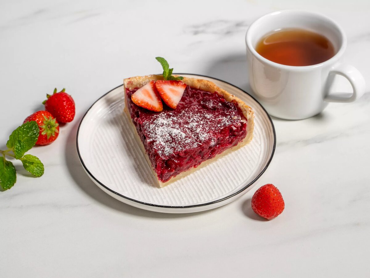 Посыпьте пирог из творожного теста сахарной пудрой и подайте его к чашке горячего чая.