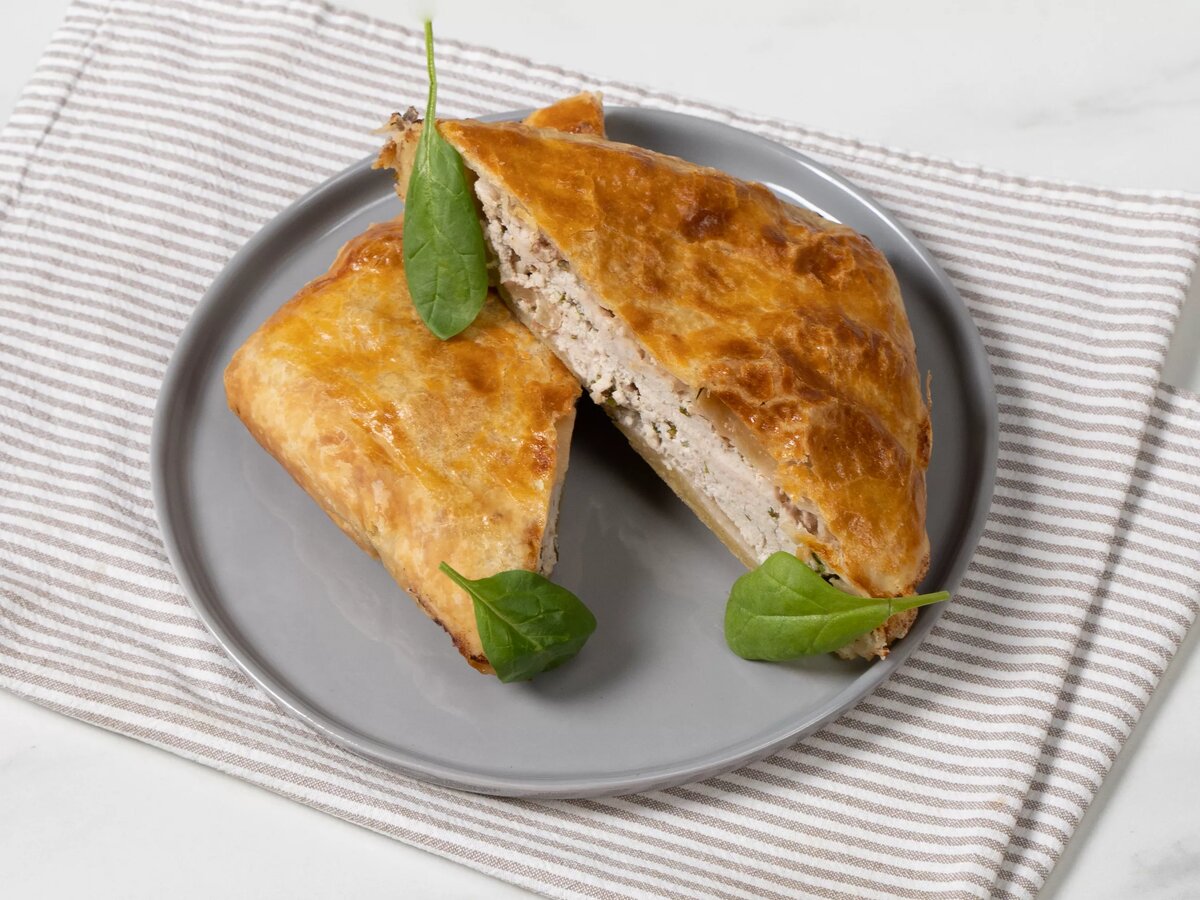 Несложный в приготовлении пирог из слоеного теста с курицей может стать самостоятельным ужином или приятно дополнить чаепитие. Помимо мясного компонента, начинка состоит из грецких орехов, сметаны и свежей зелени. Внутри тесто немного размокает от начинки, но снаружи образуется аппетитная хрустящая корочка. Этот пирог хорош как в горячем, так и холодном виде. Ингредиенты: Приготовление: Готовый пирог украсьте свежим шпинатом.