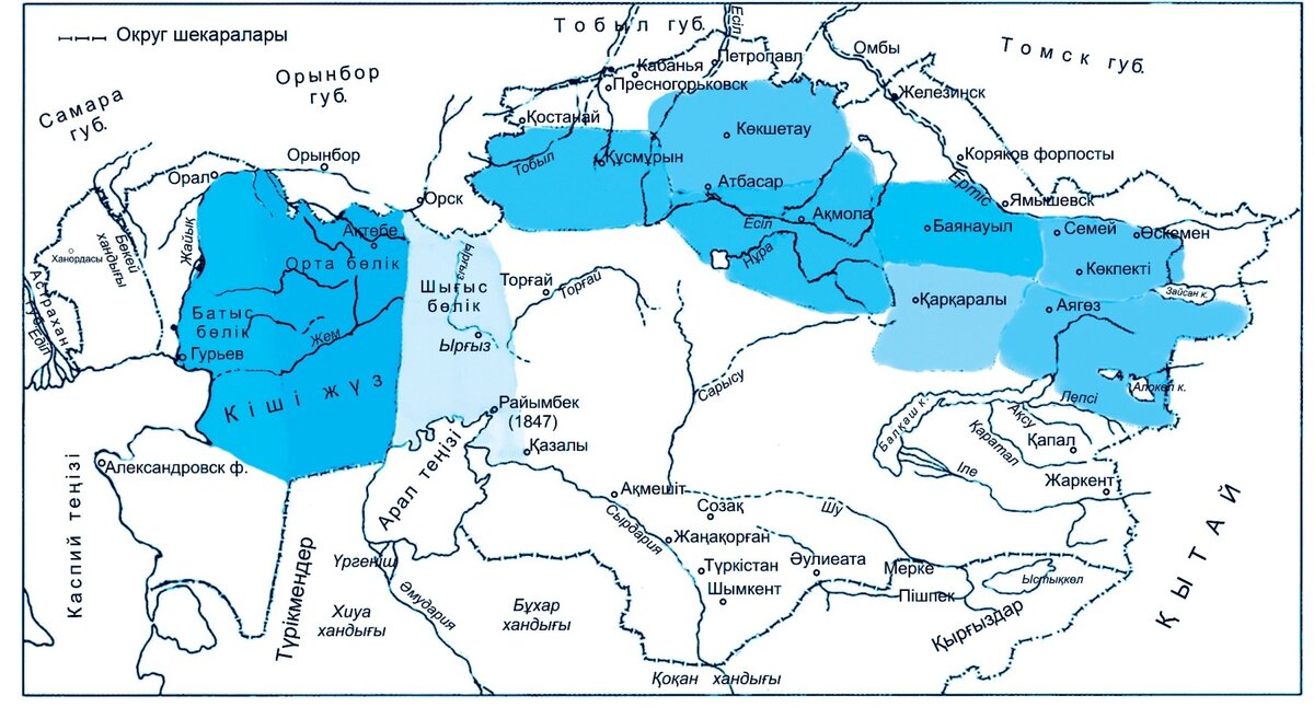 Кіші жүзде Сырым Датұлы көтерілісі осы аймақта хан беделін әлсіреткеннен кейін, Жайық пен Еділ бойында Нұралы ханның ұлы Бөкей сұлтанның хан атануы - Ресей империясының отарлық билігі үшін өз билігін орнықтыру үшін жағдай туғызды. 1810-1820 жж. Хиуа хандығы мен түркімендердің Кіші жүздің оңтүстігіне жойқын ұйымдастыруына қарсы қарсылық көрсетуге тырысқан Арыңғазы сұлтан Ресей империясынан қолдау таппады. Шерғазы ханға - Ресей империясы билік жүргізуге мүмкіндік бермеді. Кіші жүзде Арыңғазы мен Шерғазы хандар арасында текетірестер көбейді. Ресей империясы екі жаққа қолдау көрсетпей әлсіретуге тырысты. Ал Орта жүзде Уәли хан билігін Ресей империясы әлсіретуге тырысып Бөкей сұлтанды жапсарлас хан етіп жариялады. Уәлиханның қырғыздарға қарсы сәтсіз жорығы оның беделін түсіріп жіберді. ХІХ ғасырдың басында Кіші жүз бен Орта жүзде ханның беделі түсіп, жергілікті шонжарлардың беделі өсті. Бөкей хан мен Уәли ханның қайтыс болуымен Ресей империясы Орта жүзде хан сайлауына тыйым салды. Кіші жүз