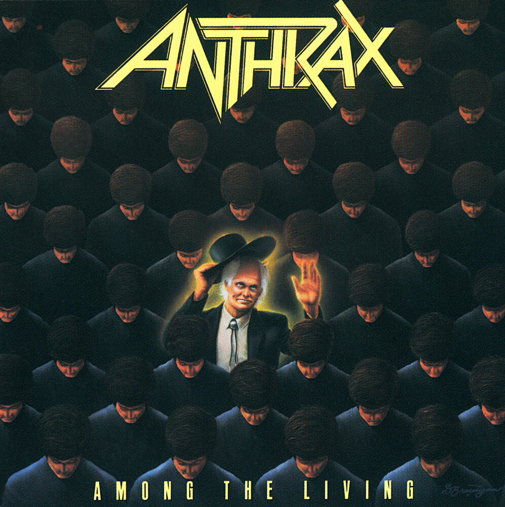 В середине 1980-х свои фирменные альбомы выпустили Metallica, Megadeth, Slayer. У Anthrax был свой козырь — пластинка «Среди живых» с интригующей обложкой с образом жуткого старика в чёрном, выходящего из толпы одинаковых человеческих фигур. Третий альбом — одна из сильнейших работ группы, позволившая Anthrax существенно расширить свою аудиторию. Он был посвящён Клиффу Бёртону из Metallica, который умер за год до этого. В ранние годы Бёртон и его товарищи иногда ночевали на полу студии Anthrax. Песни с пластинки исследуют проблемы насилия, дискриминации, лицемерия — и вообще количества зла, присутствующего в мире и окружающего нас. Иллюстрация на конверте была призвана продолжить тему. Художник Дон Бротигам, который до этого оформлял альбом Metallica и обложки книг Стивена Кинга, Герберта Уэллса и Агаты Кристи, воплотил образ зловеще улыбающегося проповедника в сверхъестественном ореоле, выглядывающего из серого безликого стада. Что это за старик, точно не знают сами Anthrax. Визуально