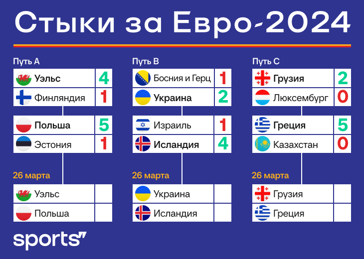 Грузия тоже прошла в финал стыков. В Европе провели большой вечер стыковых матчей за Евро-2024. Вот главное из полуфиналов – предпоследних шагов к чемпионату Европы. ● Грузия прошла Люксембург (2:0) – давила, но во втором тайме позволила сопернику сравнять. Повезло, что ВАР-судьи нашли у люксембуржцев фол на красную перед ответным голом, так вместо 1:1 сохранили победный счет и получили большинство в подарок. После добили и довели до победы. ● Греция прихлопнула Казахстан (5:0) – это точно конец сказки Магомеда Адиева. Греки сделали 4:0 уже к перерыву, и если в камбэк на два мяча, пропущенных к 15-й минуте, еще хоть как-то поверить можно было, за полматча все казахстанские шансы испарились. Грузия с Грецией сыграют в Тбилиси. Кого-то из них в группе Евро уже ждут Португалия, Турция и Чехия. ● Украина устроила камбэк против Боснии (2:1) – проигрывали 0:1 до 85-й минуты, но вышедший на замену Роман Яремчук сравнял, а через три минуты Артем Довбик принес украинцам победу. Камбэк устроили
