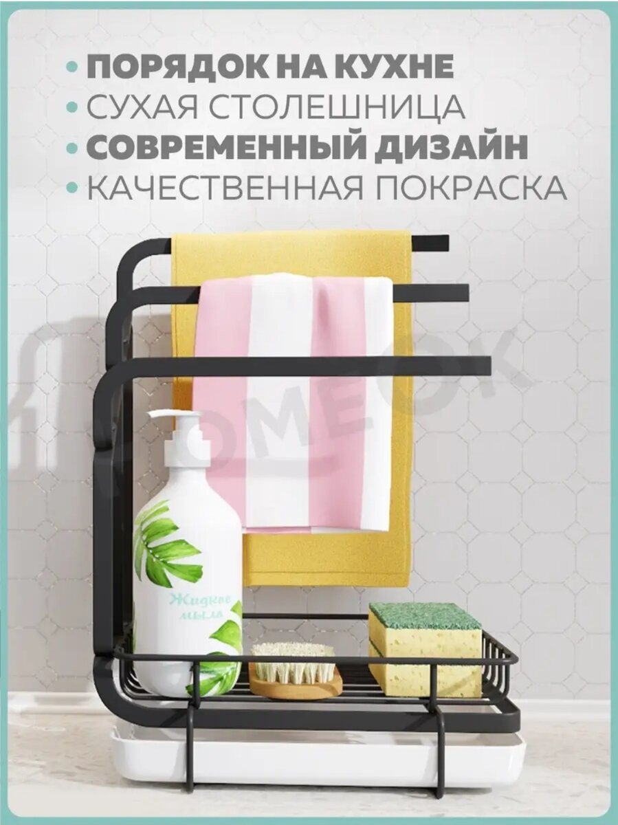Первое с нашей подборки это органайзер для моющих принадлежностей на кухню, чтобы ваши губки, тряпки не валялись на мойке, а аккуратно висели. Материал : высококачественная сталь и пластик. На выбор продавец даёт 2 цвета; чёрный и белый. Оценка товара : 4.8. В отзывах пишут, что очень удобный органайзер, но есть минусы, некоторые пишут, что он ржавеет, другие, что некоторые химические свойства не помещаются на органайзер, но в целом всём всё нравится. Цена на момент написания статьи : 779 р. Артикул : 85420958 Так же из этой же категории есть ещё один подобный органайзер, со специальным дозатором для моющего средства. Он предлагается в следующих цветах; мраморный, белый в синию крапинку, чёрный, бежевый, серый, белый. Материал: смола. Оценка товара: 4.9. В основном пишут восторженные отзывы, выглядит очень эстетично. Но есть отзывы, что через время дозатор для моющего средства, становиться тугим и тяжело потом выдавливать средствосредство. Цена на момент написан