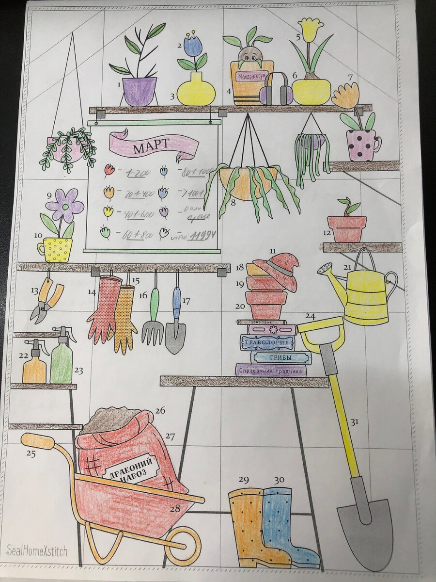 Прошел март, раскрасила очередной вышивальный трекер от группы Дом тюленя. В этот раз украшали теплицу профессора Стебль и изучали травологию Крестиковый март был не очень большой, главное что в принципе-был! В гостях была собака сестры, так что с двумя помощницами в два раза веселее вышивалось!) Схема в подарок: Гарри Поттер, собственной персоной Дизайнер предложила еще один вариант оформления-вышивать только центральные части, без окантовки со звездами, и делать объемные колокольчики-пинкипчики