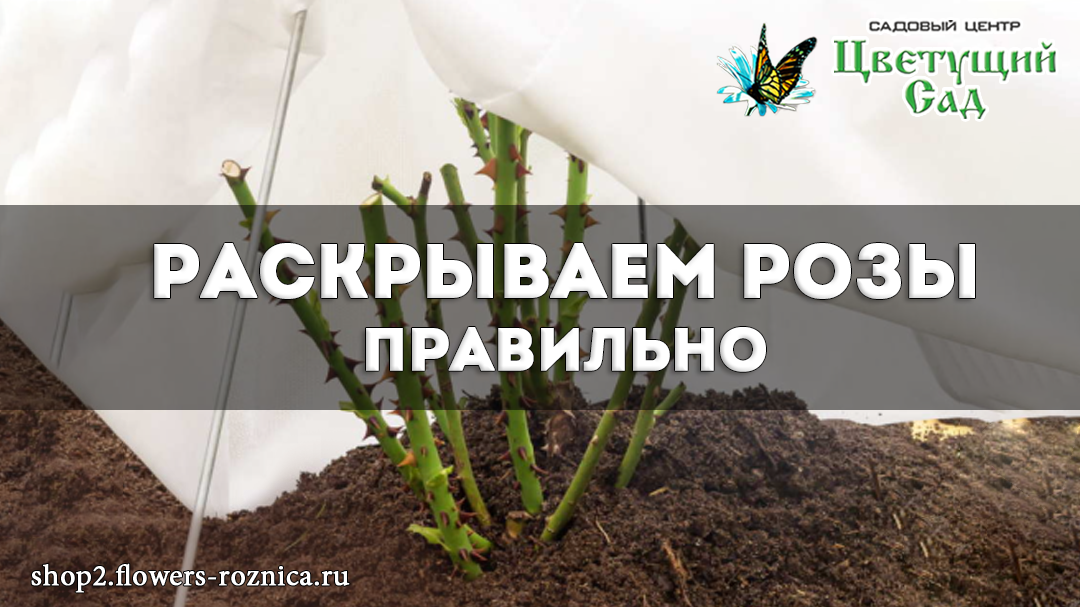 В начале весны розы требуют особого внимания. Процесс снятия укрытия с роз после зимы должен происходить в определенное время и осуществляться постепенно. Если в первой половине марта случаются оттепели, и снег сошел с укрытия, важно эти оттаявшие области забросать снегом обратно. Это помогает растению не проснуться раньше времени. Если Вы использовали укрытие для роз, которое не пропускает влагу (например, пленку или поликарбонат), то в апреле нужно его убрать, как только начнется активное таяние снега. Обычно розы страдают от выпревания под таким укрытием даже больше, чем от зимних морозов. Не стоит торопиться снимать нетканый укрывной материал в апреле. Весеннее солнце может быть очень агрессивным, и под спанбондом розы будут в безопасности, так как этот материал “дышит”. Без притенения роза может начать расти за счет своих внутренних резервов, но поскольку корневая система пока спит, роза, дав несколько молодых побегов и исчерпав все свои внутренние ресурсы, просто погибнет. Важно
